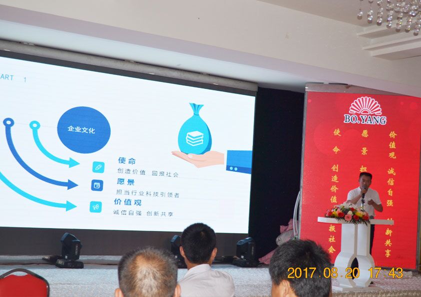 2017年8月20日下午,安丘博陽(yáng)機(jī)械制造有限公司2017年度年中總結(jié)會(huì)議暨下半年目標(biāo)達(dá)成動(dòng)員大會(huì)在安丘匯泉酒店召開(kāi)??偨?jīng)理閆吉祥,副總