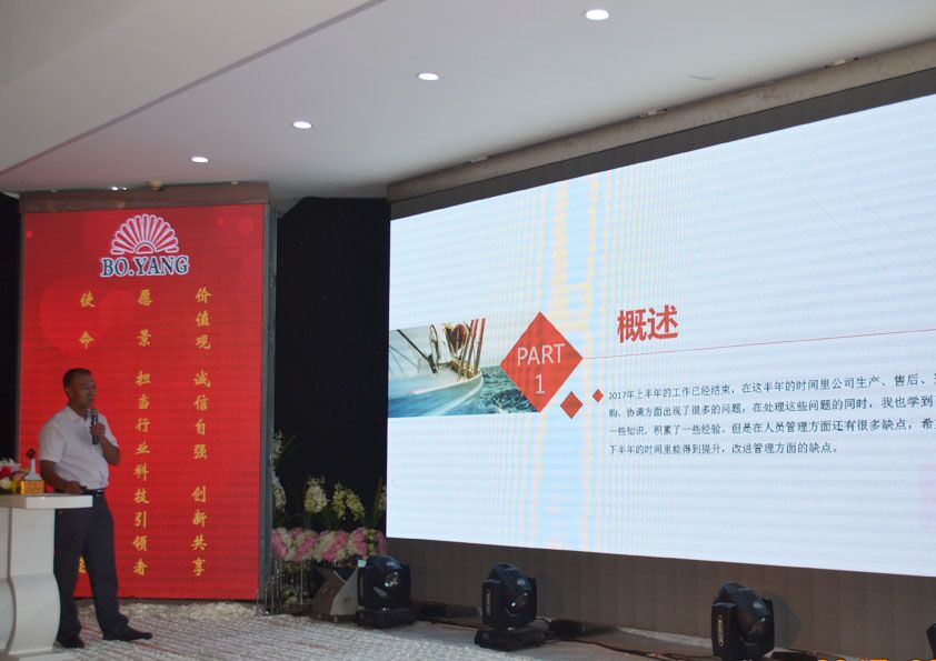 閆吉祥總經(jīng)理首先對(duì)上半年的銷售情況、員工激勵(lì)情況、組織架構(gòu)及團(tuán)隊(duì)建設(shè)情況、企業(yè)文化發(fā)展情況作了回顧,對(duì)公司內(nèi)部涌現(xiàn)出的員工進(jìn)行了表彰,并對(duì)下半年的工作作全面部署。